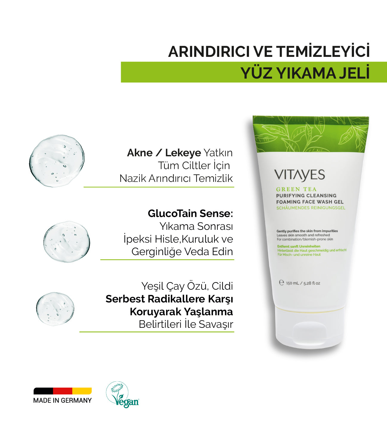 • Akne Karşıtı Yağlı Ciltler Sivilce ve Siyah Nokta Giderici Vitayes Yüz ve Makyaj Temizleme Jeli